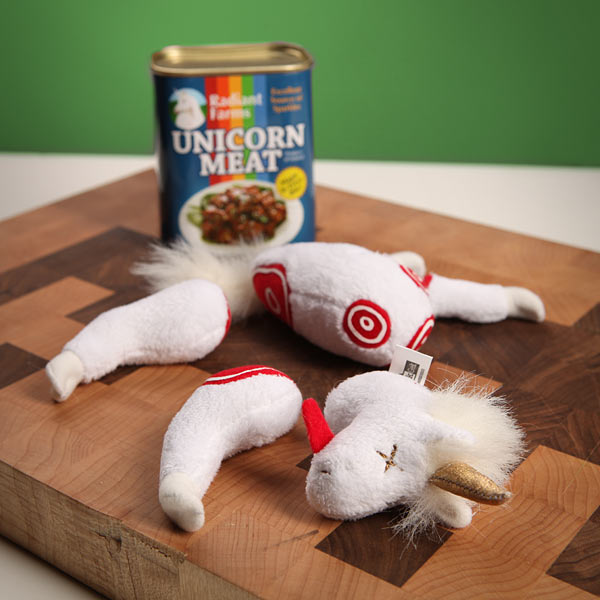 - Okay, for real: you can't eat this. It's a dismembered stuffed unicorn in a can.